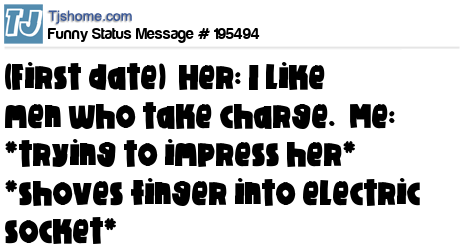 X says (First date) Her: I like men who take charge. Me: *trying to impress her* *shoves finger into electric socket*