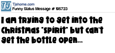 X says I am trying to get into the Christmas "spirit" but can't get the bottle open...