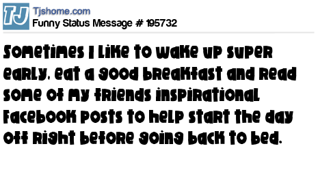 X is Sometimes I like to wake up super early, eat a good breakfast and read some of my friends inspirational Facebook posts to help start the day off right before going back to bed.