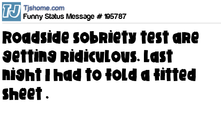 - # 149150 Roadside sobriety tests are getting ridiculous. Last night I had to fold a fitted sheet