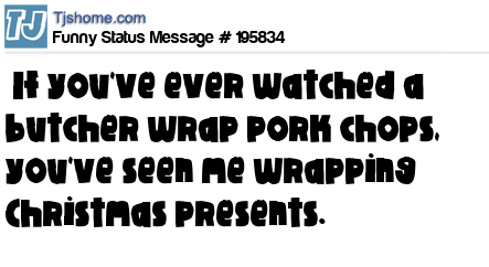 X says If you've ever watched a butcher wrap pork chops, you've seen me wrapping Christmas presents.