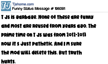 X says T Js is garbage. None of these are funny and most are reused from years ago. The prime time on T Js was from 2012-2013 now it’s just pathetic. And I’m sure the mod will delete this. But truth hurts.