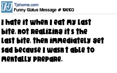 - # 208704 I hate when I eat my last bite of food, not realizing it was the last bite,then immediately get sad because I wasn't able to mentally prepare myself. 🥓🍕🍔🍲😥