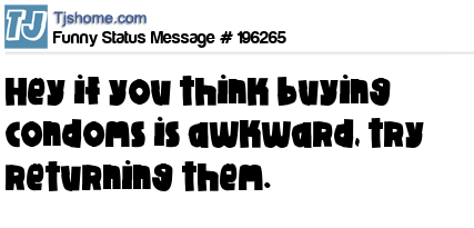 - # 188189 If you think buying condoms is awkward, try returning them.....