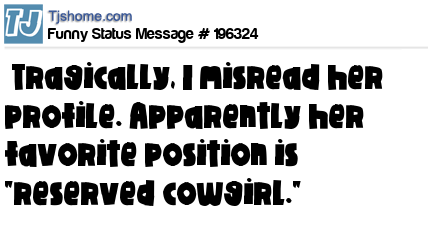 X says Tragically, I misread her profile. Apparently her favorite position is "reserved cowgirl."