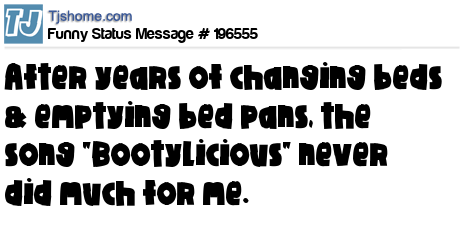 X After years of changing beds & emptying bed pans, the song "Bootylicious" never did much for me.