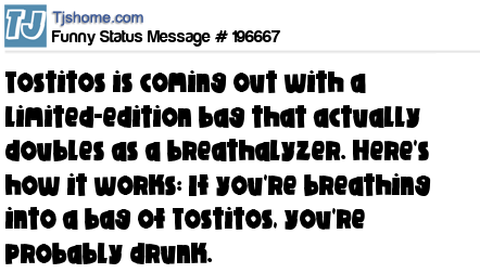 X says Tostitos is coming out with a limited-edition bag that actually doubles as a breathalyzer. Here's how it works: If you're breathing into a bag of Tostitos, you're probably drunk.