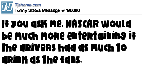 X says If you ask me, NASCAR would be much more entertaining if the drivers had as much to drink as the fans.