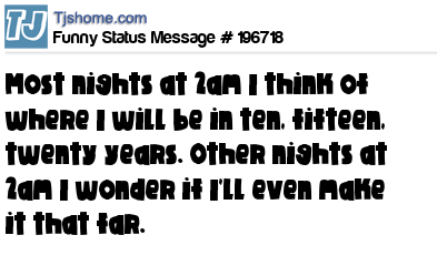 X says Most nights at 2am I think of where I will be in ten, fifteen, twenty years. Other nights at 2am I wonder if I'll even make it that far.