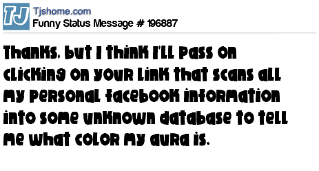 X is Thanks, but I think I'll pass on clicking on your link that scans all my personal facebook information into some unknown database to tell me what color my aura is.