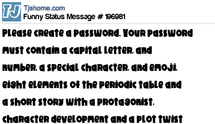 X says Please create a password. Your password must contain a capital letter, and number, a special character, and emoji, eight elements of the periodic table and a short story with a protagonist, character development and a plot twist at the end
