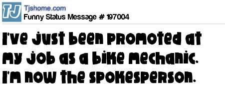 X says I've just been promoted at my job as a bike mechanic. I'm now the spokesperson.