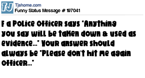 - # 161350 Police officers say anything you say will be taken down and make be used as evidence .. your answer should always be please officer don't hit me again