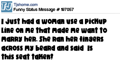 X says I just had a woman use a pickup line on me that made me want to marry her. She ran her fingers across my beard and said “Is this seat taken?”