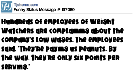 X says Hundreds of employees of Weight Watchers are complaining about the company's low wages. The employees said, "They're paying us peanuts. By the way, they're only six points per serving."