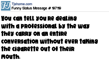 X says You can tell you’re dealing with a professional by the way they carry on an entire conversation without ever taking the cigarette out of their mouth.