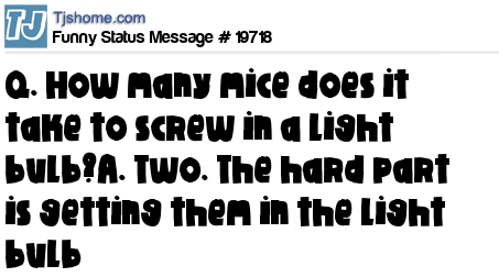 X Q. How many mice does it take to screw in a light bulb?A. Two. The hard part is getting them in the light bulb