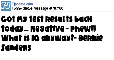 X says Got my test results back today... Negative - phew!! What is IQ anyway?- Bernie Sanders