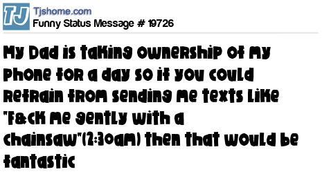 X is My Dad is taking ownership of my phone for a day so if you could refrain from sending me texts like "F&ck me gently with a chainsaw"(2:30am) then that would be fantastic