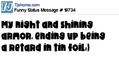 - # 48938 thought he was my knight in shining armor, but it turned out he was just some retard in aluminum foil
