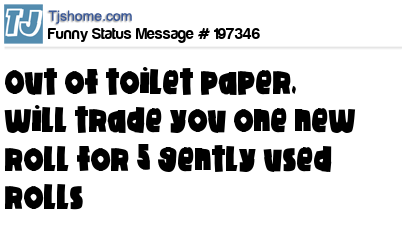 X Out of toilet paper, will trade you one new roll for 5 gently used rolls