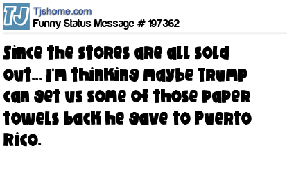 - # 197378 It's gotten so bad that Trump has reached out to Puerto Rico and asked for the paper towels back..