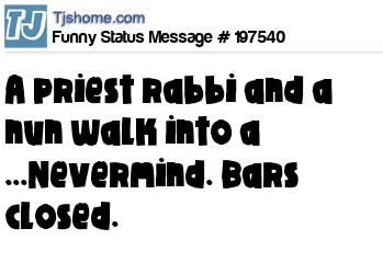 X says A priest rabbi and a nun walk into a ...Nevermind. Bars closed.