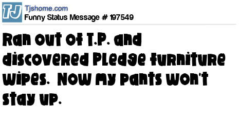 X says Ran out of T.P. and discovered Pledge furniture wipes. Now my pants won't stay up.