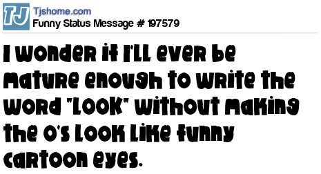 X says I wonder if I'll ever be mature enough to write the word "LOOK" without making the O's look like funny cartoon eyes.