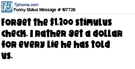 X is Forget the $1,200 stimulus check. I rather get a dollar for every lie he has told us.