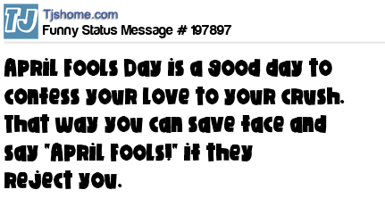 - # 95516 good joke today...single people change ur realtionship status to "in a relation". when friends ask who it is say "april....April Fools"