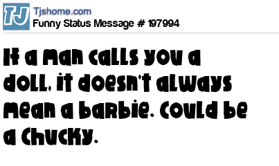 X says If a man calls you a doll, it doesn't always mean a barbie. Could be a Chucky.