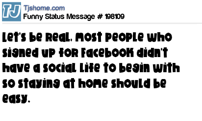 X is Let's be real, most people who signed up for Facebook didn't have a social life to begin with so staying at home should be easy.
