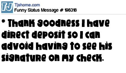 X is * Thank goodness I have direct deposit so I can advoid having to see his signature on my check.