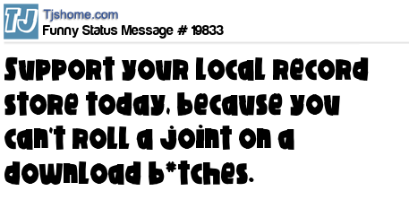 X Support your local record store today, because you can't roll a joint on a download b*tches.