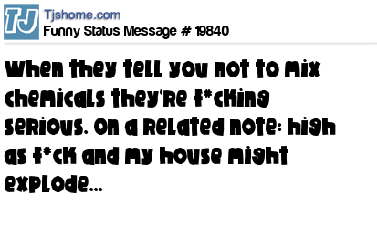 X When they tell you not to mix chemicals they're f*cking serious. On a related note: high as f*ck and my house might explode...