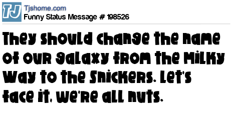 X says They should change the name of our galaxy from the Milky Way to the Snickers. Let's face it, we're all nuts.