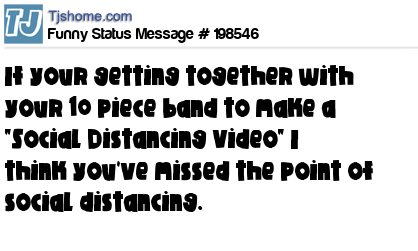 - # 198006 Just thought I'd point out that if you're going around to different friends houses to make "Social Distancing" videos with you're missing the point.