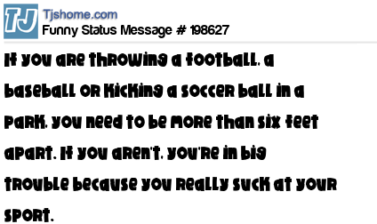 X says If you are throwing a football, a baseball or kicking a soccer ball in a park, you need to be more than six feet apart. If you aren't, you're in big trouble because you really suck at your sport.