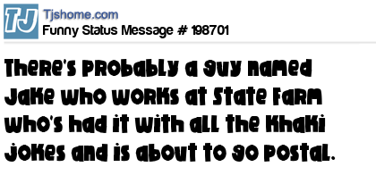 X says There's probably a guy named Jake who works at State Farm who's had it with all the khaki jokes and is about to go postal.