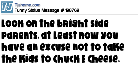X says Look on the bright side parents, at least now you have an excuse not to take the kids to Chuck E Cheese.