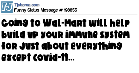 X Going to Wal-Mart will help build up your immune system for just about everything except Covid-19...