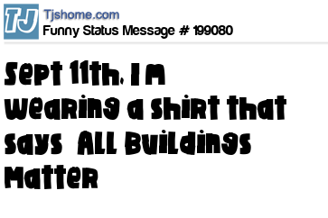 X says Sept 11th, I’m wearing a shirt that says “All Buildings Matter”