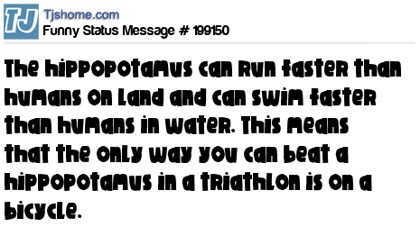 X says The hippopotamus can run faster than humans on land and can swim faster than humans in water. This means that the only way you can beat a hippopotamus in a triathlon is on a bicycle.