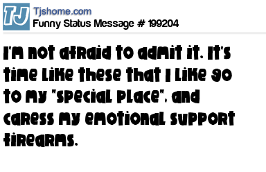 X says I'm not afraid to admit it. It's time like these that I like go to my "special place", and caress my emotional support firearms.