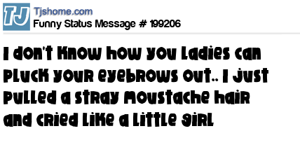 X says I don't know how you ladies can pluck your eyebrows out.. I just pulled a stray moustache hair and cried like a little girl