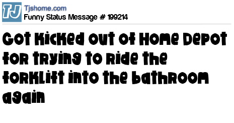 X says got kicked out of Home Depot for trying to ride the forklift into the bathroom again
