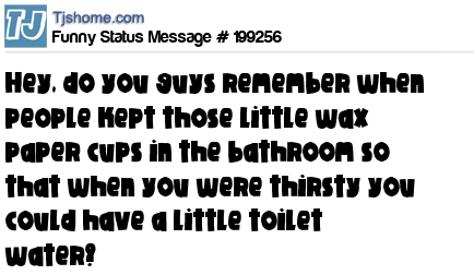 X says Hey, do you guys remember when people kept those little wax paper cups in the bathroom so that when you were thirsty you could have a little toilet water?
