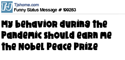 X is My behavior during the Pandemic should earn me the Nobel Peace Prize