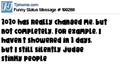 X says 2020 has really changed me, but not completely. For example, I haven’t showered in 3 days, but I still silently judge stinky people